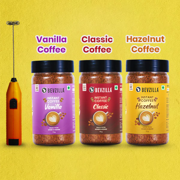 Experience the convenience and pleasure of our instant coffee powder. Indulge in the rich aroma and exquisite flavors of Bevzilla, crafted from 100% pure Arabica beans. With three irresistible flavors to choose from, each sip offers a smooth, frothy, and premium cafe-like